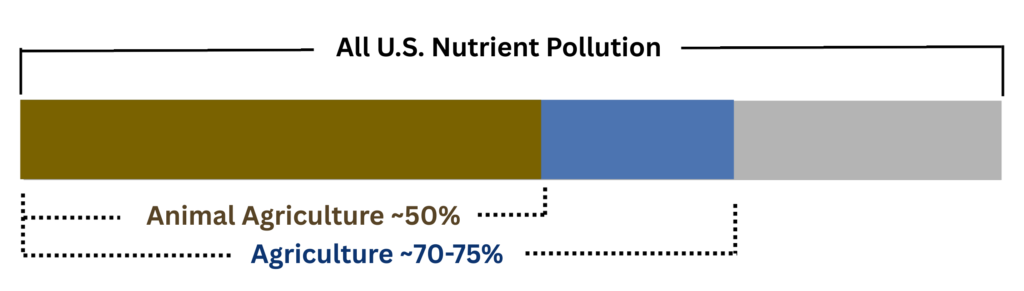 3. Industrial animal ag is responsible for ~70% of agriculture’s contributions, and therefore about half of all nutrient pollution.