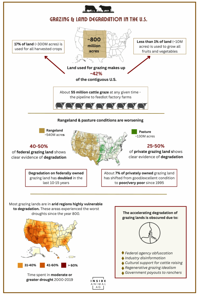 This infographic offers a few key figures on the amount of U.S. land used for grazing and the degradation of both federally and privately owned grazing lands, as well as a snapshot of the how degradation is likely to continue.