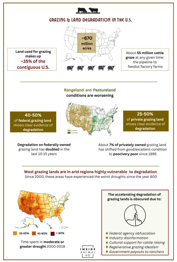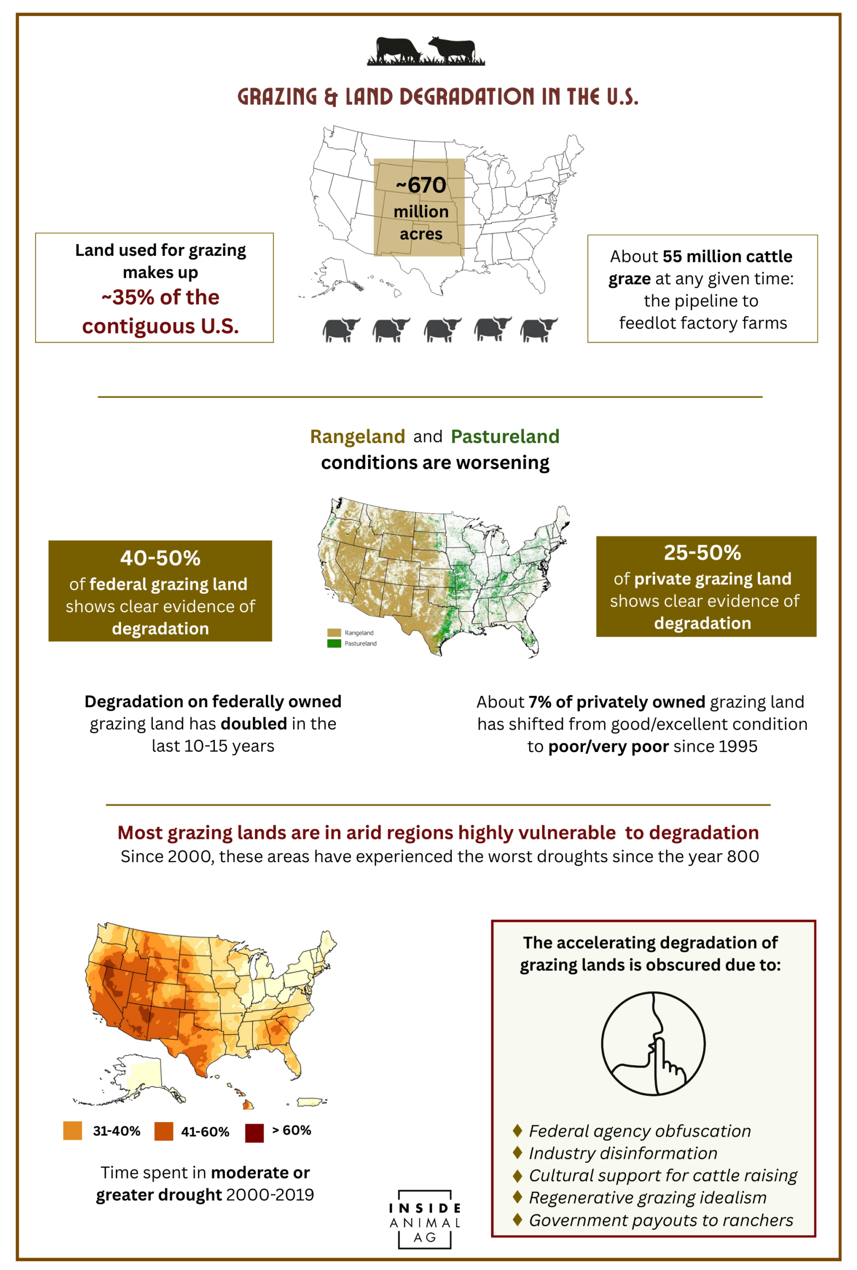 This infographic offers a few key figures on the amount of U.S. land used for grazing and the degradation of both federally and privately owned grazing lands, as well as a snapshot of the how degradation is likely to continue.