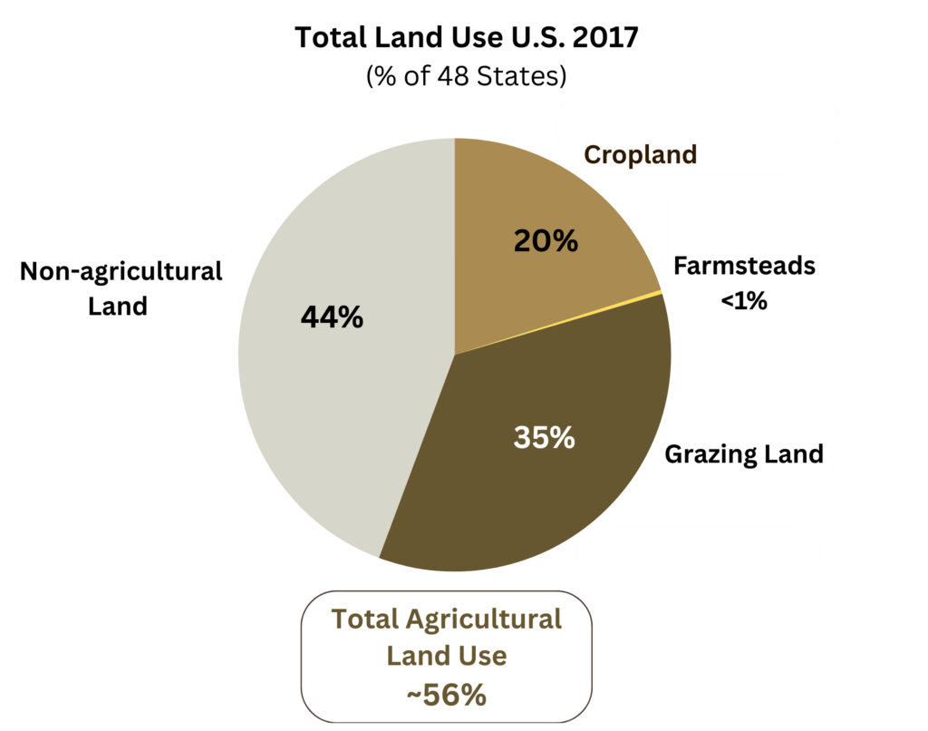 Agricultural land makes up ~56% of the land area of the contiguous 48 states.